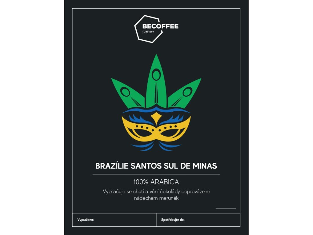 Brazílie Santos Sul de Minas- Směs káv z farem Capoeira a Colonia dos Pinheiros, které se nacházejí v regionu Sul de Minas.